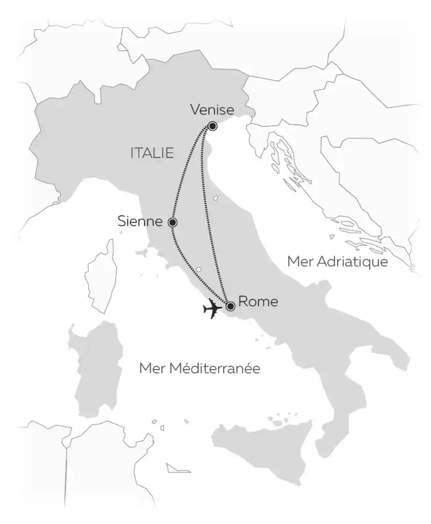 Sur les pas de grands romanciers qui ont emprunté ces couloirs, comme Agatha Christie, Ian Fleming ou Guillaume Apollinaire, rejoignez votre cabine cocon et laissez-vous surprendre au matin par les paysages de lagune vénitienne embrumée. La Sérénissime et ses canaux vous réservent une visite d’exception en gondole. Le soir venu, la magie opère à nouveau à bord de l’Orient Express, qui vous mènera cette fois jusqu’à Sienne, véritable joyau médiéval de la Toscane, terminus de ce voyage riche en émotions et en découvertes culturelles.