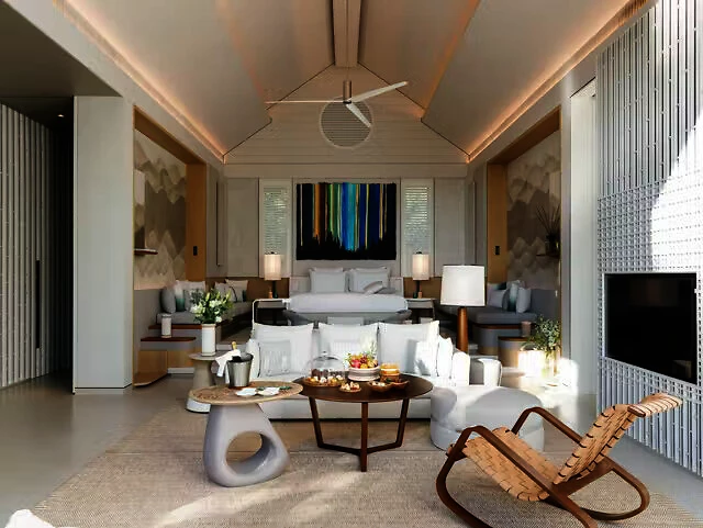 Lovées sur la plage ou perchées sur la colline, chaque villa accueille de somptueux espaces intérieurs et extérieurs, comprenant de spacieuses salles de bains avec dressings indépendants ainsi qu’une piscine privée et de vastes terrasses.