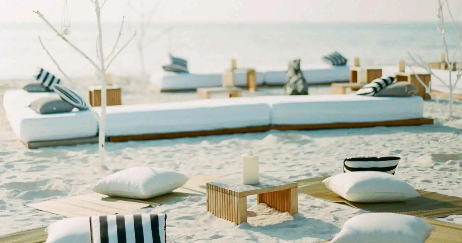 Espace détente sur la plage de l'île Lavadhoo, COMO Maalifushi