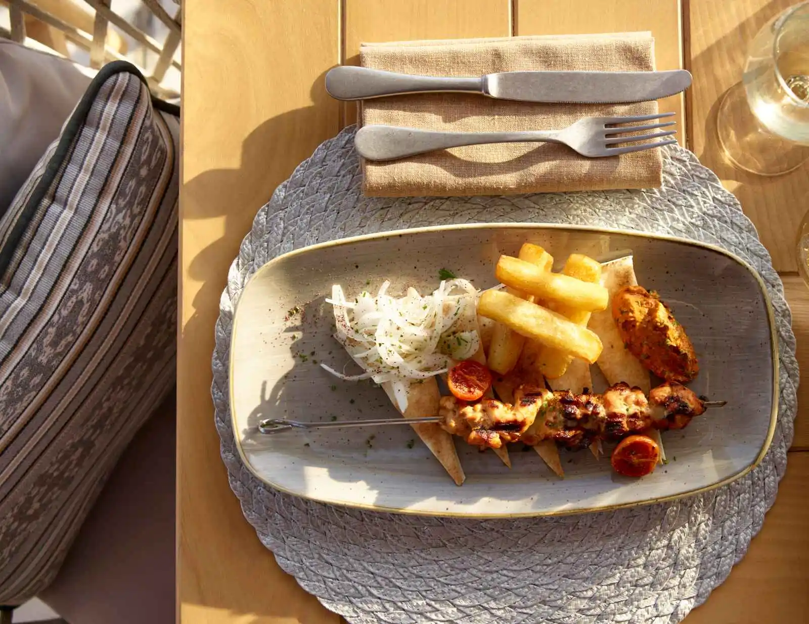 Plat servis au restaurant Kos, hôtel Ikos Aria Resort