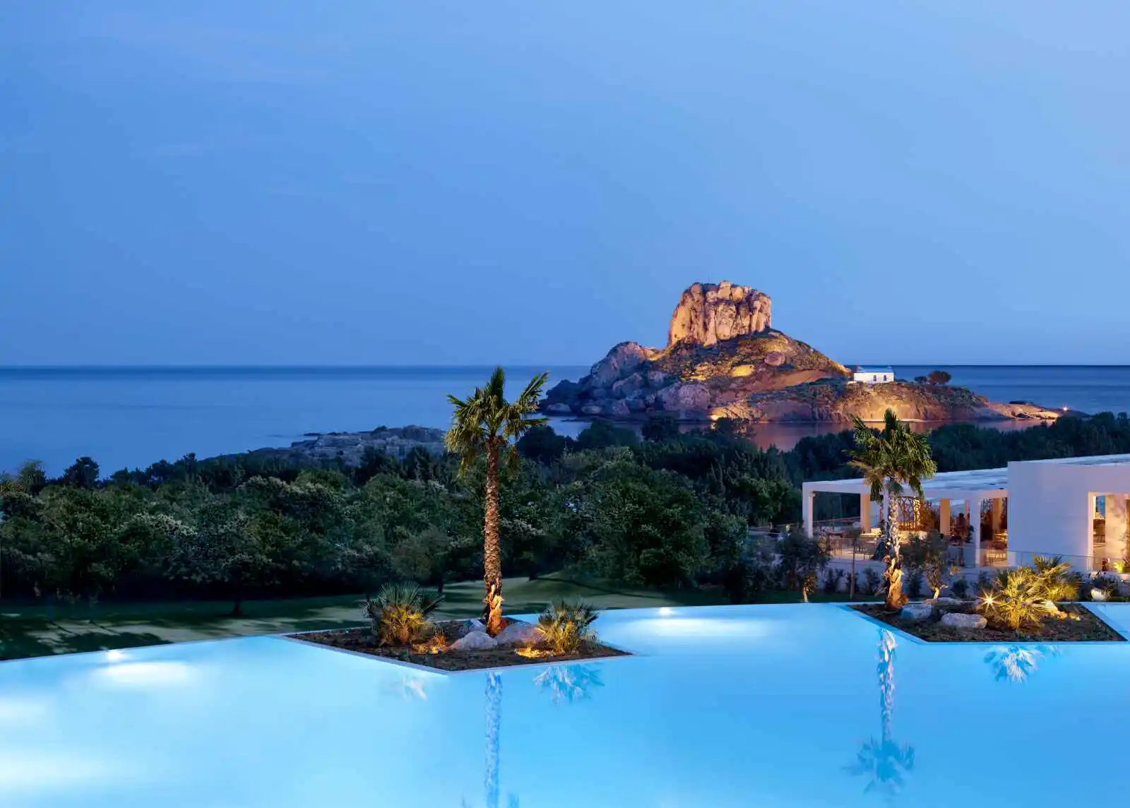 Piscine de l'hôtel de nuit, hôtel Ikos Aria Resort