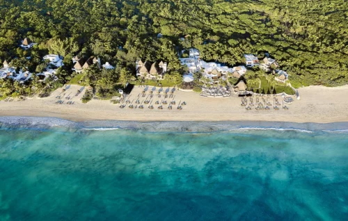 Suites d’une superficie de 60 à 106 m², sur la plage avec vue océan, certaines avec bassin privé ou piscine privée.