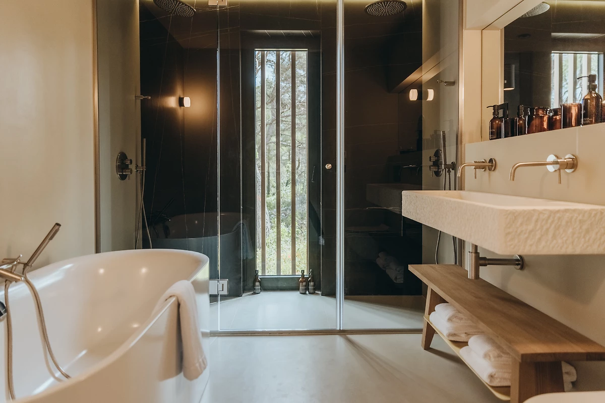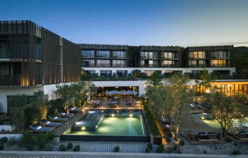 Il est possible de papillonner d’un espace de détente à l’autre, notamment entre les deux piscines chauffées, entourées de majestueux decks en bois. Si la première sied aux familles, rien ne viendra perturber la quiétude ondulante et le chant des cigales lors des chaudes après-midi passées au bord de la seconde, l’infinity pool réservée aux adultes. Au Maslina Resort, un concierge répond à toutes les exigences des convives, les vins renommés sont triés sur le volet par un sommelier expert tandis que la plus fine gastronomie de Méditerranée se retrouve dans les cocktails et les assiettes servies sur nappe blanche ou au bar de plage, plus casual.