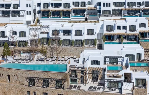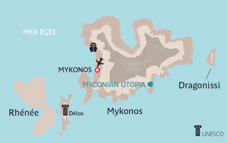 Vue aérienne, Myconian Utopia, Mykonos, Grèce