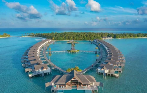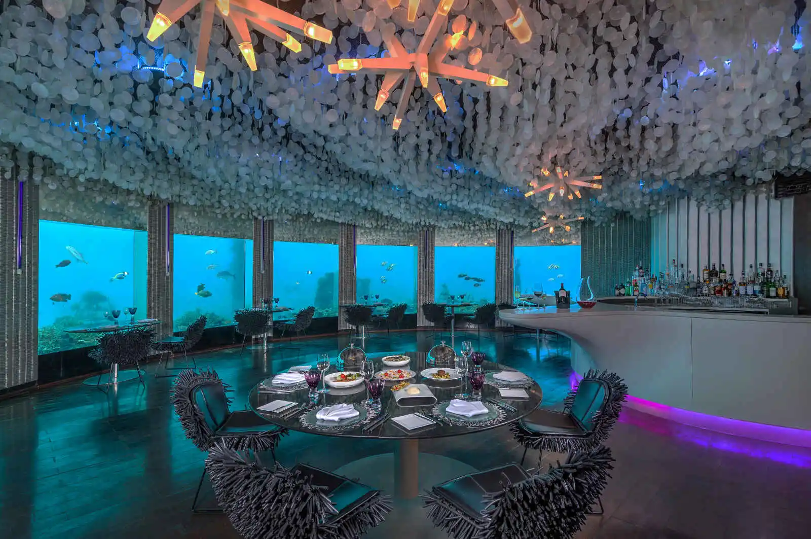 Un petit creux ? Le réfrigérateur des villas et pavillons déborde de victuailles issues des meilleures épiceries fines. L’hôtel compte aussi 6 restaurants aux concepts étonnants pour distraire autant les papilles que les yeux. L’Edge, uniquement accessible par bateau, est apprécié pour ses saveurs sophistiquées et dépaysantes, le Tribal pour sa cuisine live orchestrée par les chefs. Le Subsix, à six mètres sous l’eau, vous plonge dans les délices marins qui défilent dans l’assiette comme par le hublot, tandis que le Fahrenheit, en rooftop, joue sur sa vue panoramique et ses cocktails signature. Les familles ne s’ennuieront jamais dans cet éden, un kids club – le plus grand de l’Océan Indien, et des activités sportives (surf, snorkeling, accrobranche…) se déclinent pour tous les âges.