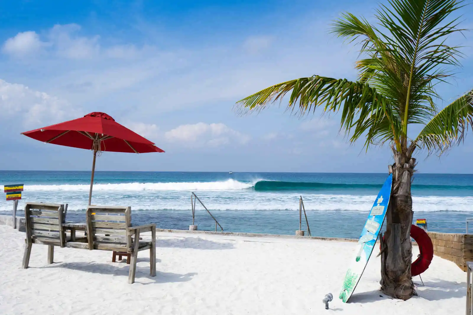 Enfin, un petit escalier offre un accès direct à la mer pour une immersion immédiate dans les eaux cristallines du lagon.