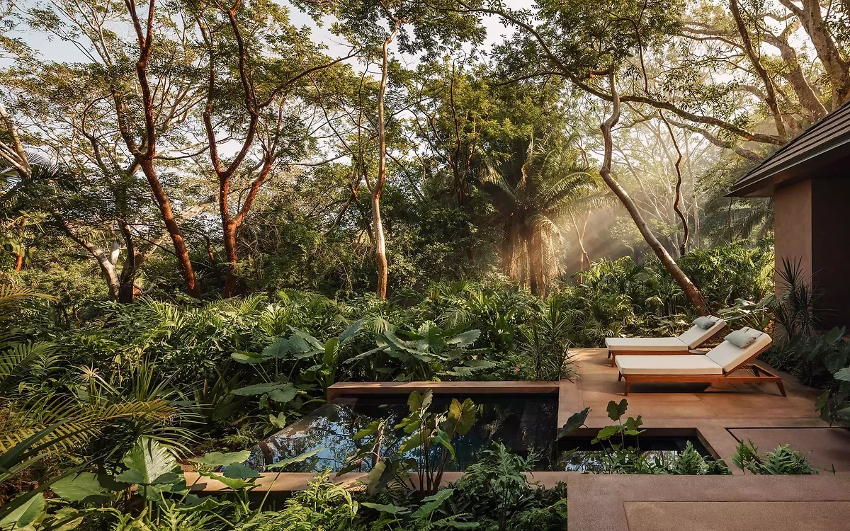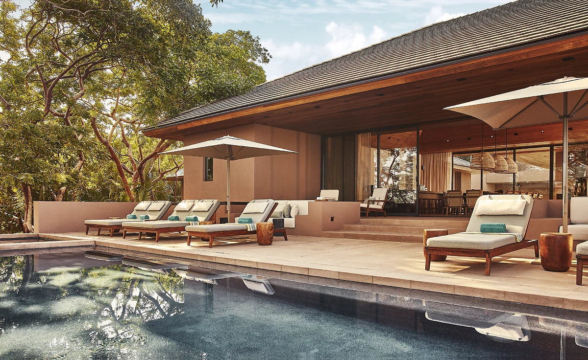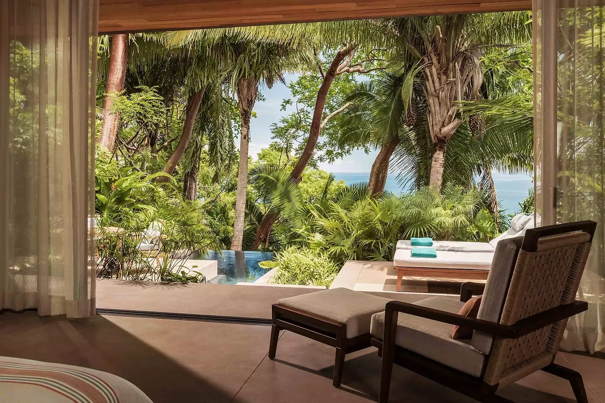 Villas d’une superficie de 127 m² avec une chambre, vue jungle ou océan et terrasse de 41 m², salon séparé avec table à manger.