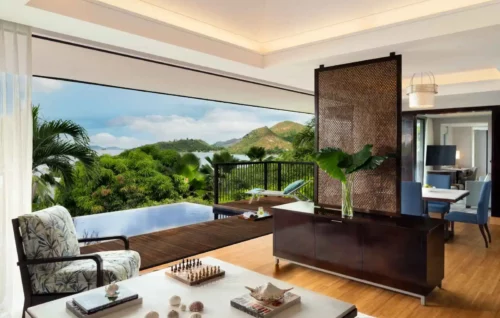 Disséminées dans un domaine luxuriant descendant vers la mer, les villas du Raffles Seychelles affichent un design élégant et apaisant, ainsi qu’une vue imprenable sur la baie qui promet de vous envoûter. Entre végétation luxuriante, services irréprochables, piscine privée, solarium et traitements des plus relaxants au Spa, cet hôtel 5 étoiles consistue un véritable havre de paix dominant l’océan Indien.