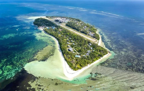 Vue aérienne de l'hôtel, Waldorf Astoria Seychelles Platte Island