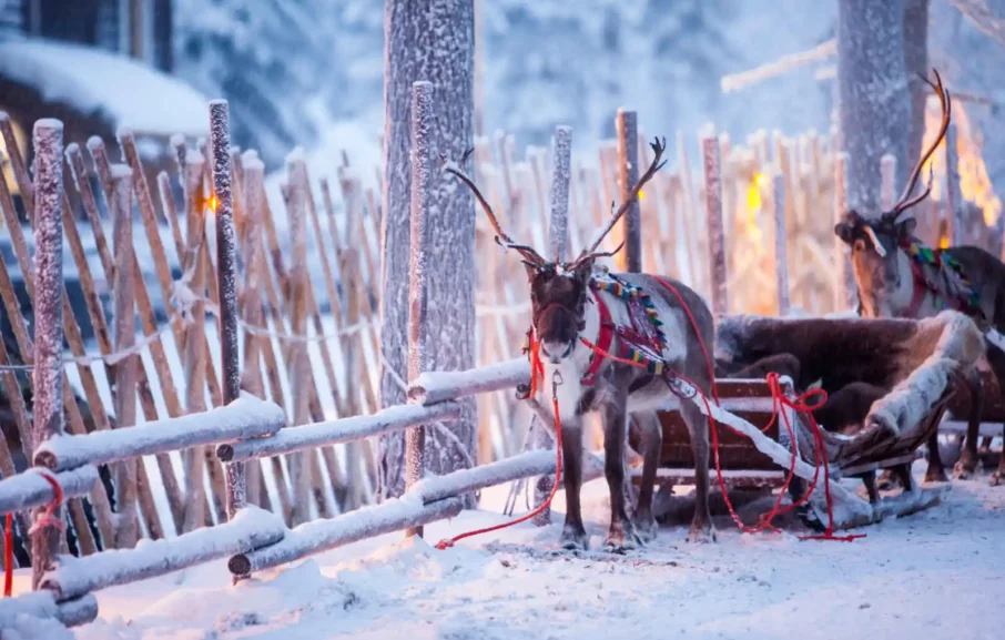 Départ en autocar. Cérémonie de passage du Cercle polaire Arctique. Visite de la ferme de rennes et initiation à la conduite d’un traîneau (env. 800 m). Remise d’un permis de conduire. 200 m plus loin, halte dans une ferme de chiens huskies. Conduite d’un traîneau (env. 20 min) et dégustation de jus de baies autour d’un feu. Déjeuner puis découverte du Village du Père Noël. Un cadeau sera remis aux plus jeunes, par le père Noël en personne. Retour à l’hôtel dans l’après-midi. Dîner à l’hôtel.