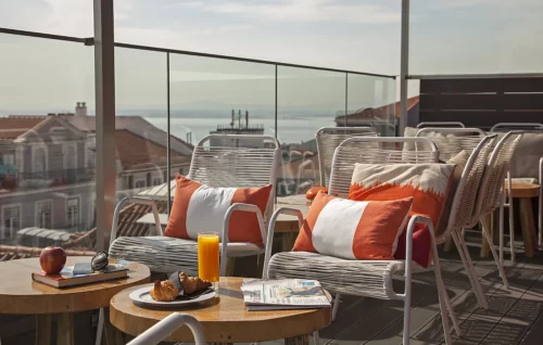 Une façade bleue en carreau d'azulejos, une décoration élégante et sobre signée par le cabinet d'architecte portugais Miguel Saraiva, un bar rooftop avec vue imprenable sur la ville et une localisation centrale qui permet de découvrir à pied les quartiers bohèmes et pittoresques qui l'entourent, cet hôtel est le lieu idéal pour une escapade lisboète.