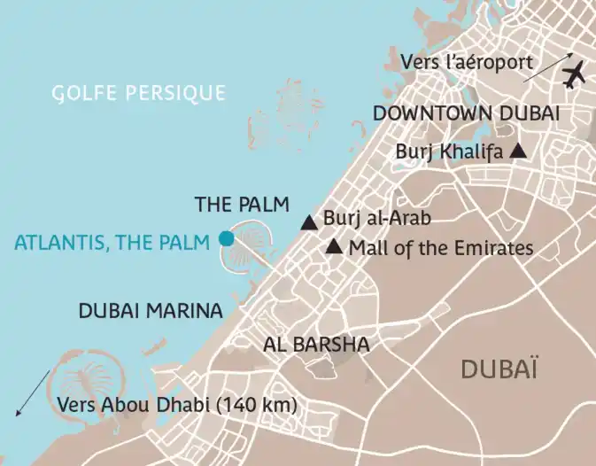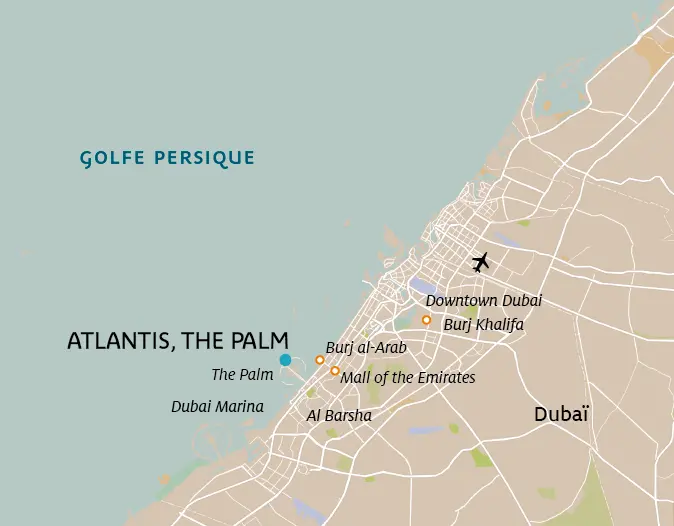 Situé sur Palm Island, Atlantis The Palm, l’un des projets architecturaux les plus avant-gardistes de Dubaï, vous offre une vue infinie sur le golfe Persique. Ce complexe spectaculaire, digne d’une œuvre de Jules Verne, ravira les familles avec sa plage privée, son parc aquatique géant, ses piscines, ses suites luxueuses et ses restaurants étoilés. Vivez l’exubérance dubaïote dans un paradis de loisirs et de luxe.
