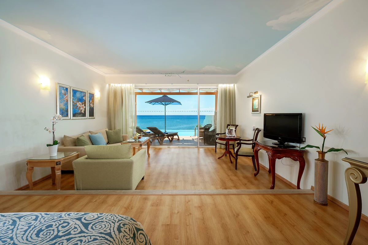 Suite junior platinum front de mer avec piscine, 61 m² jusqu’à 3 personnes, avec vue mer.