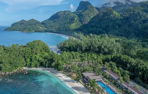 Vue aérienne de l'hôtel, Avani+ Barbarons Seychelles, Mahé, Seychelles