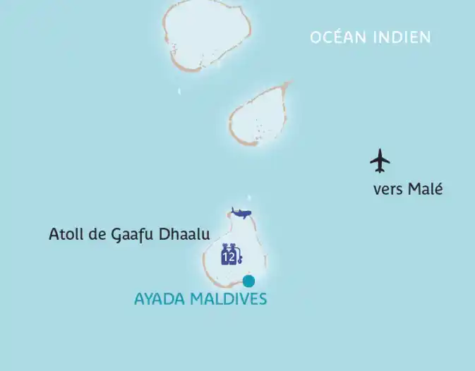 Situé tout au sud de l’archipel dans l’atoll de Gaafu Dhaalu, l’hôtel Ayada Maldives vous promet dépaysement et déconnexion. Robinsonnade garantie sur cette île naturelle à la végération luxuriante, ourlée d’une plage d’un blanc immaculé. Muni de votre masque tuba, le magnifique lagon sera votre terrain de jeu pour découvrir la richesse de sa barrière de corail. À moins que, plus aventureux, vous n’optiez pour surfer la vague ! Ici tout est réuni pour faire de votre séjour une parenthèse paradisiaque.