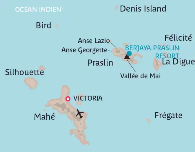 À 25 minutes en voiture de l'aéroport de Praslin.