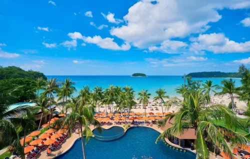 À 1 h de l’aéroport de Phuket, sur la plage de Kata.