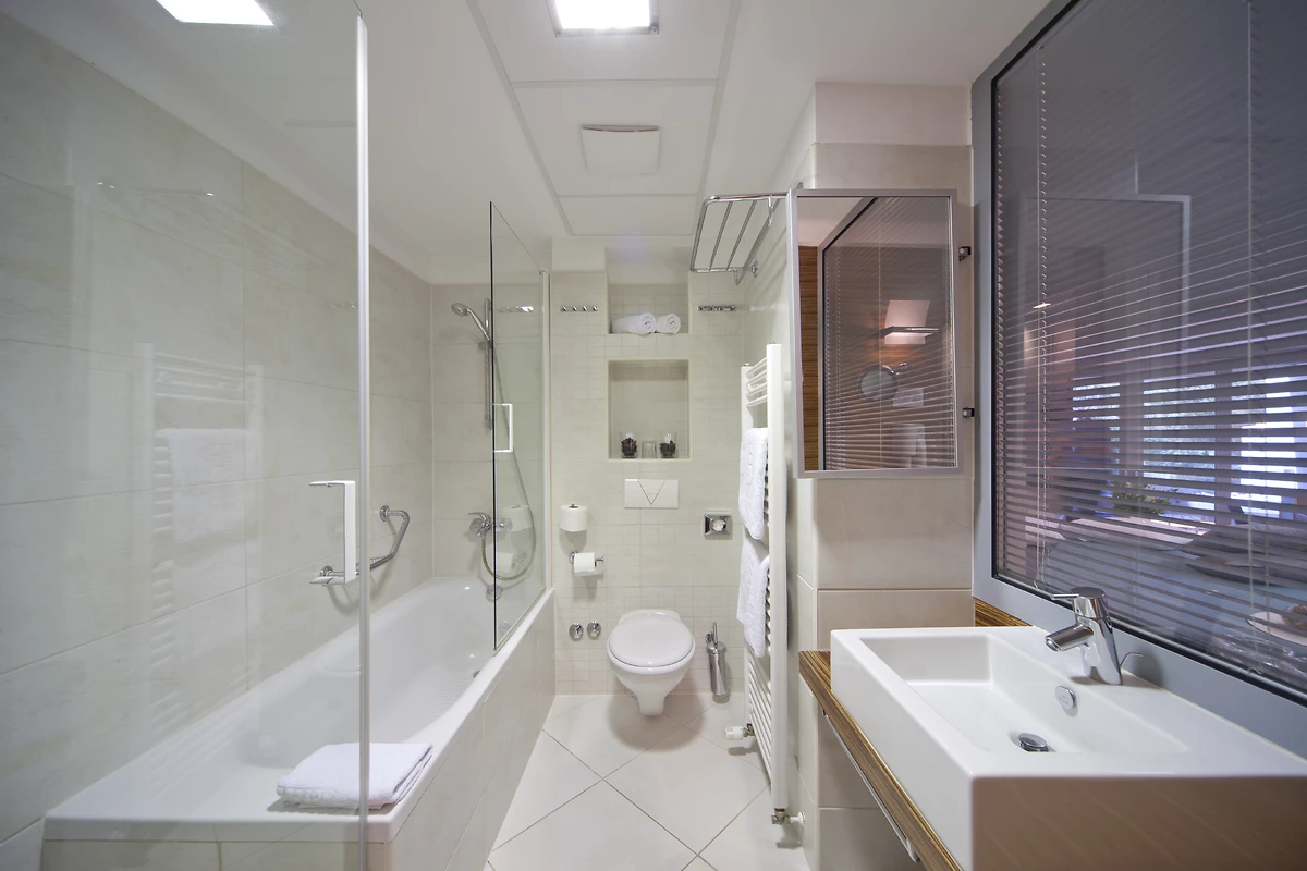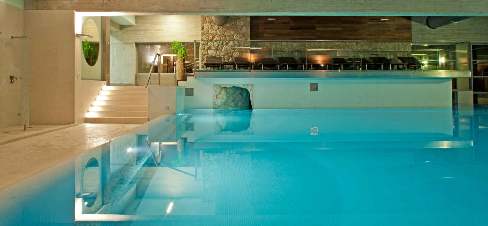 Vaste centre de bien-être de 1 400 m² s’ouvrant sur l’extérieur avec solarium : doté d’une piscine intérieure communiquant sur l’extérieur, d’un biosauna offrant un bon équilibre entre chaleur et humidité, d’un sauna finlandais, d’un tepidarium (bain de vapeur tiède), d’un bain à remous et de douches sensorielles.