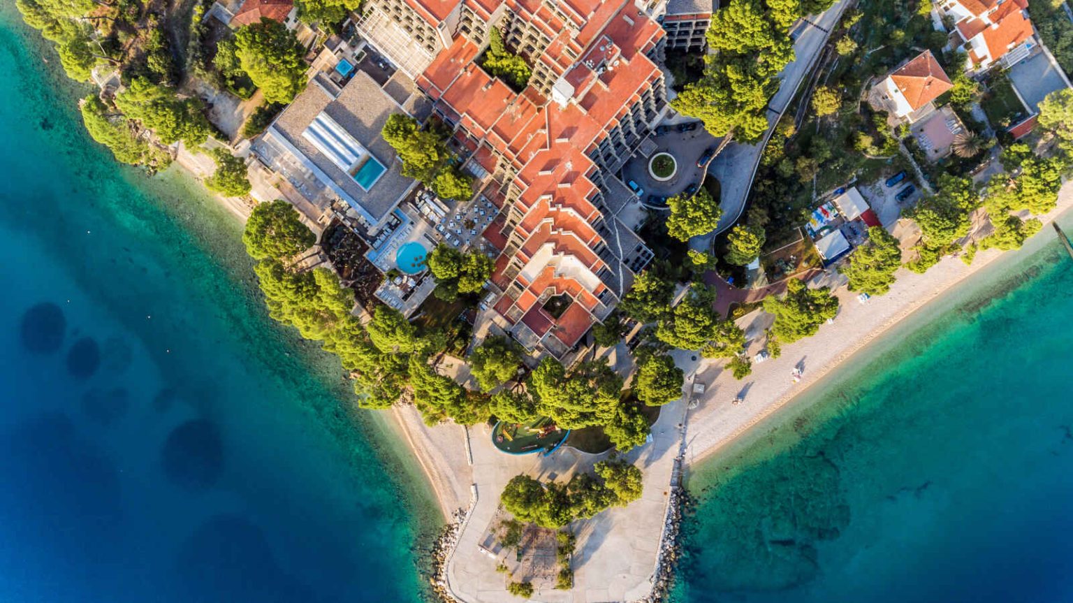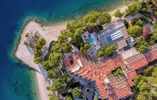 Vue aérienne du Bluesun Hotel Soline, Croatie