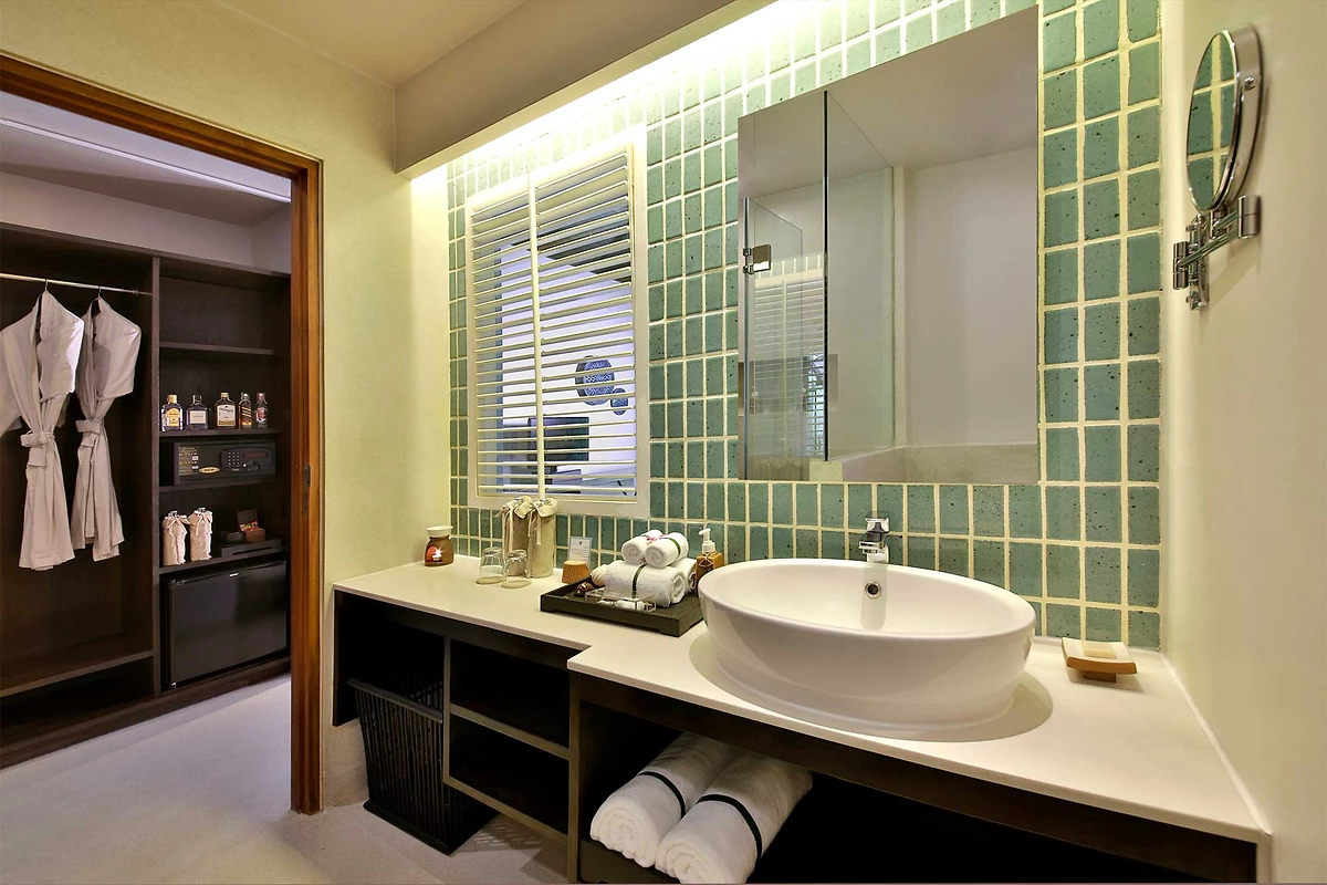 De 45 à 55 m2, destinées aux + de 16 ans. Elles sont réparties dans de petits bâtiments de 2 niveaux en bord de mer. Les chambres deluxe front de mer bénéficient de chaises longues réservées sur la plage.