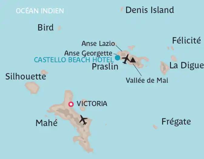 Découvrez le Castello Beach Hotel, idéalement situé au bord des criques de sable blanc de l’Anse Kerlan, au nord-ouest de Praslin. Avec son jardin tropical ainsi que sa vue sur l’océan et ses couchers de soleil, votre séjour sera une véritable parenthèse enchantée.