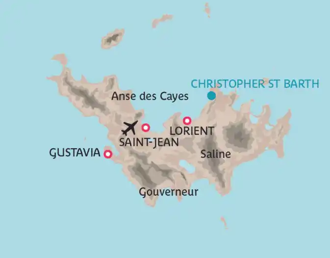 Au nord-est de l’île, à 6 km de l’aérodrome Saint-Jean.