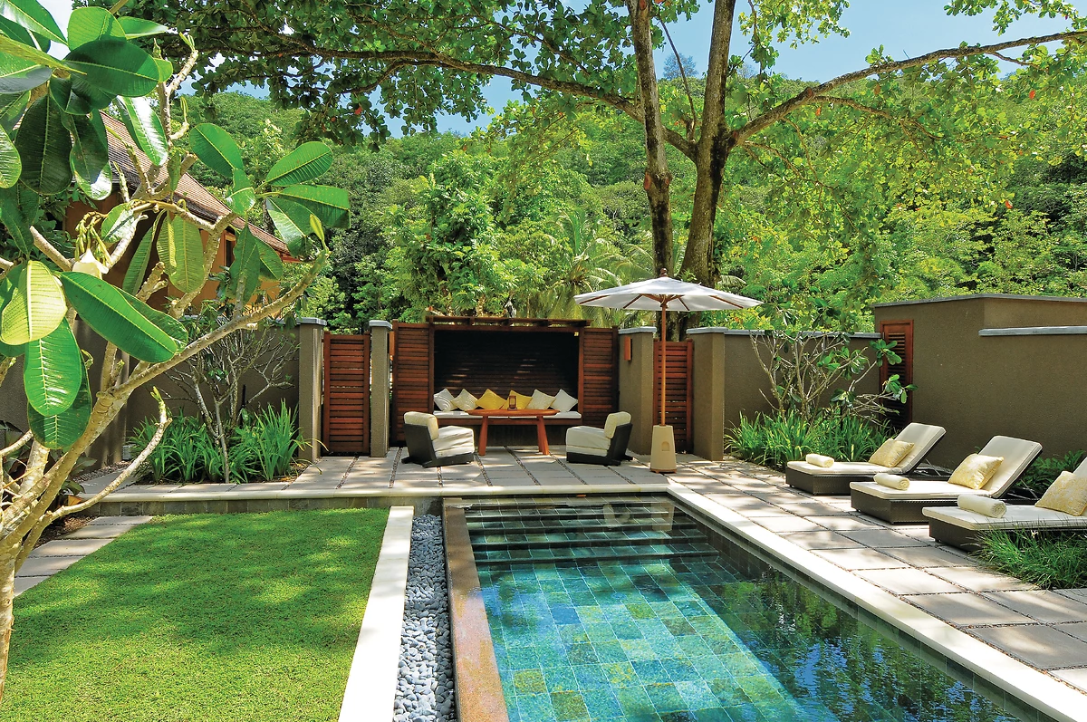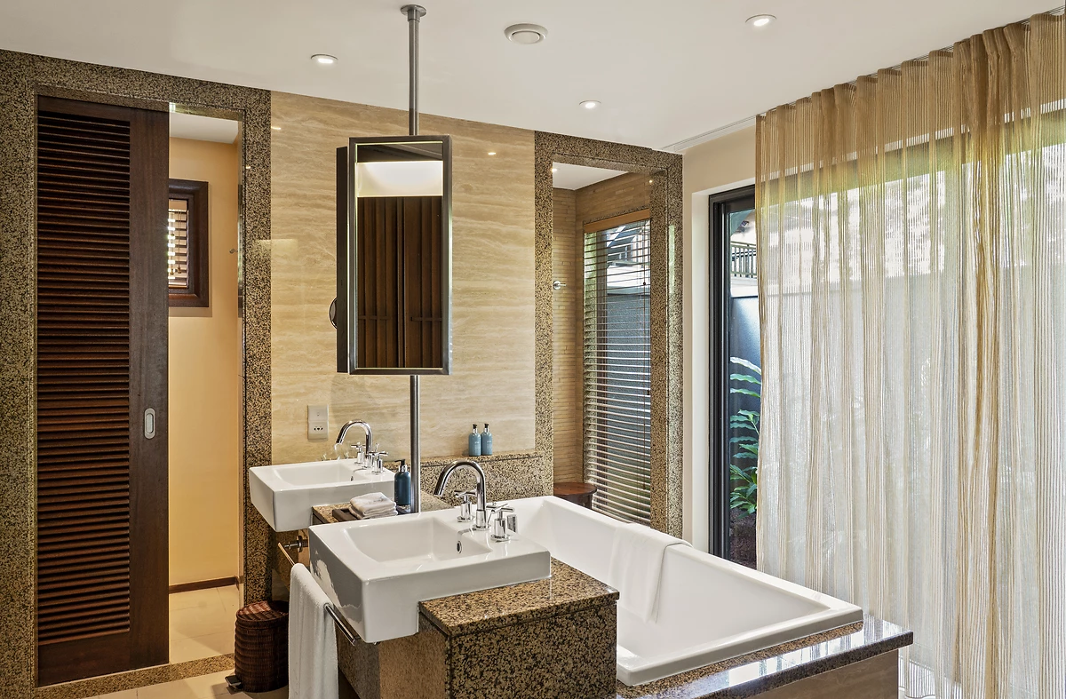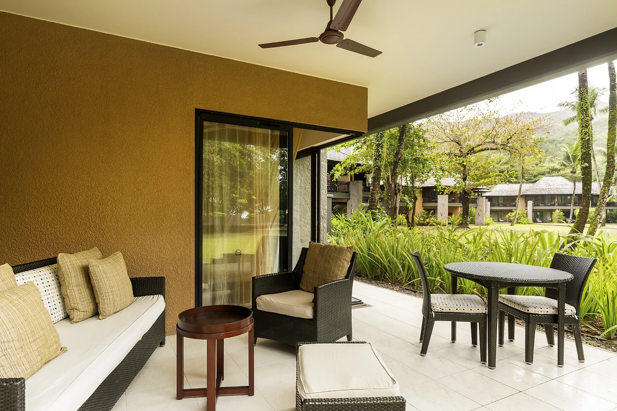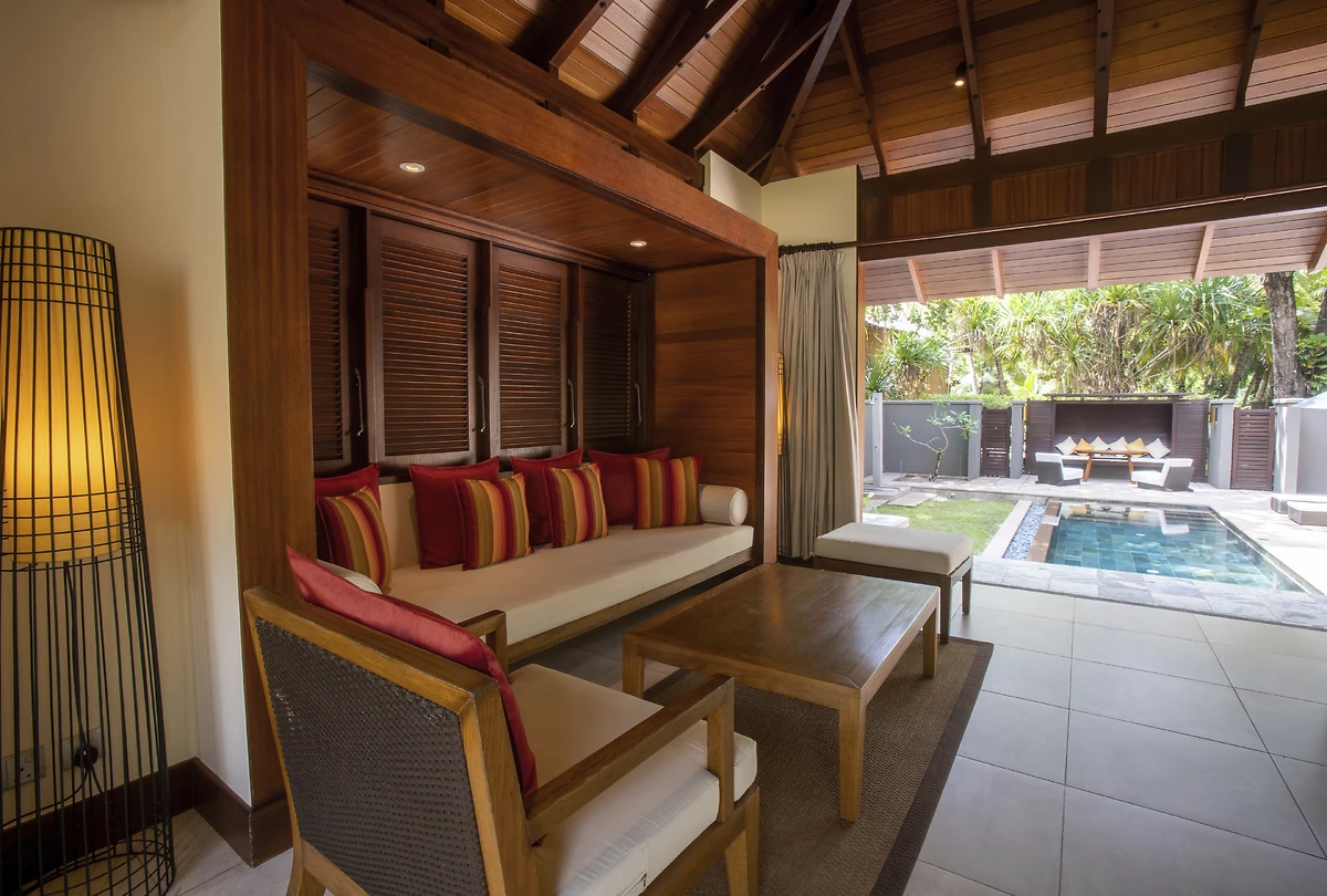 Ces vastes villas de 185 m² ont le privilège d’être situées à quelques pas seulement de la plage nord de Port Launay, l’une des plus belles de Mahé, sur laquelle s’étend le domaine de l’hôtel. Dotées d’une belle hauteur sous plafond et toit de chaume, leur décoration met en valeur les fines nuances naturelles du bois. Conçues avec un grand souci du détail, elles peuvent accueillir jusqu’à 2 adultes. Chaque résidence s’ouvre sur une cour intérieure verdoyante qui abrite une grande piscine et une pergola à l’abri des regards grâce aux murs de pierre qui la délimite. L’intérieur est aménagé avec une chambre comprenant un grand lit double et un salon séparé qui offre une vue dont vous ne pourrez vous lasser grâce aux grandes portes-fenêtres du sol au plafond. La salle de bains est composée d’une grande baignoire, d’une cabine de douche, d’une double vasque et d’un WC séparé. Une pièce entière est dédiée au dressing. Chaque villa est équipée d’une machine à café Nespresso bien achalandée, d’un réfrigérateur avec une sélection de vins et de vélos.