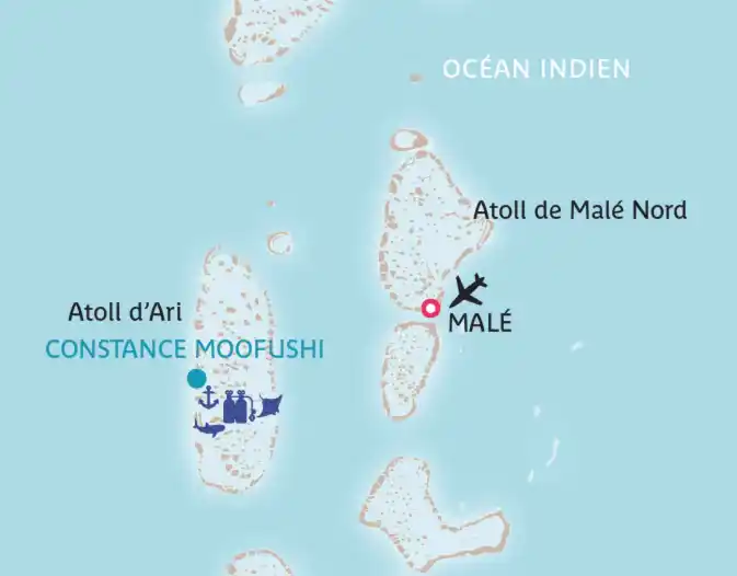 À 30 min de l’aéroport de Malé en hydravion.