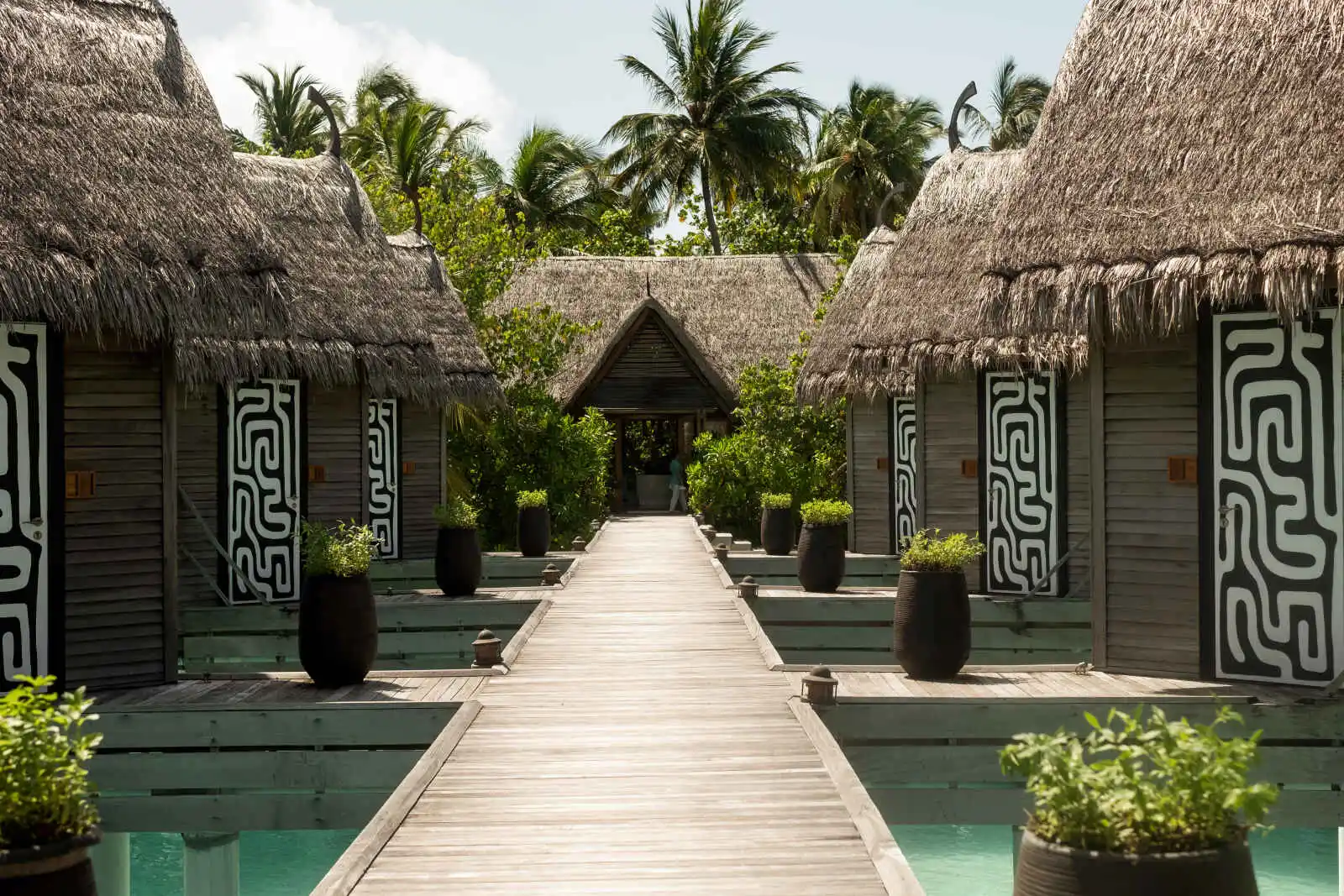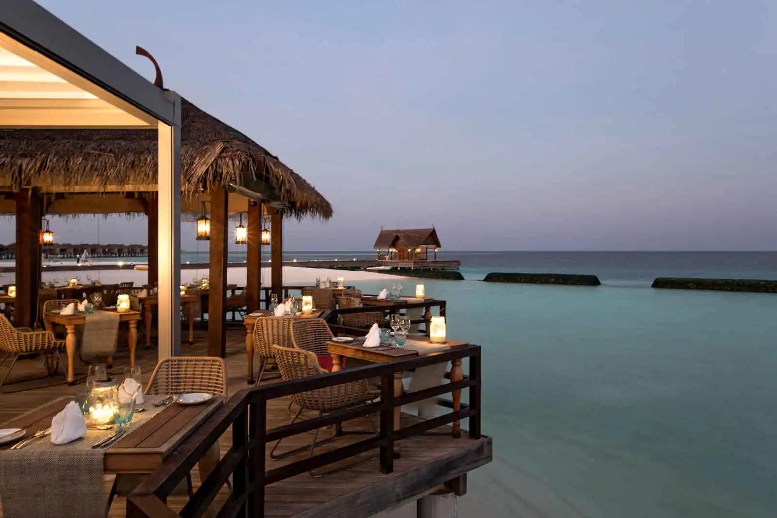 Comme en lévitation sur les eaux translucides du lagon, ces villas en bois sur pilotis disposent d’une superficie de 94 m² et ont été spécifiquement conçues pour accueillir jusqu’à 3 adultes ou 2 adultes et 2 enfants. Elles s’ouvrent sur une grande terrasse extérieure en bois aménagée comprenant un espace repas et deux lits de plage pour laisser s’égrener les heures en contemplant les nuances infinies de turquoise de l’océan Indien. La chambre spacieuse est construite autour du lit king-size couronné des auspices chaleureux d’un plafond mansardé de chaume tressée. Depuis ce trône languide prolongé d’une méridienne, la vue dégagée sur le lagon fait office de descente de lit. La chambre est équipée d’une télévision à écran LCD et d’une machine Nespresso. La salle de bains comprend une cabine de douche et des toilettes séparées, une double vasque, ainsi qu’une cour intérieure à l’abri des regards avec une baignoire îlot en plein air qui semble flotter sur l’eau.