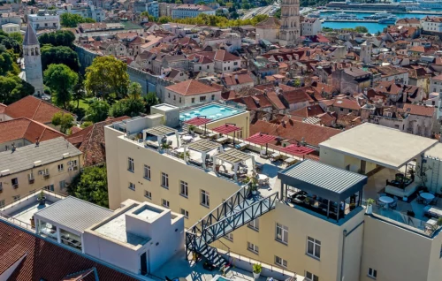 Construit en 2014, cet hôtel moderne offre une magnifique vue sur le Split historique et sur la mer Adriatique depuis son toit terrasse.
