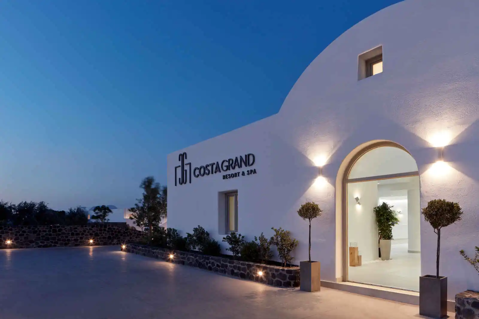Vue aérienne de l'hôtel, Costa Grand Resort & Spa, Santorin, Grèce