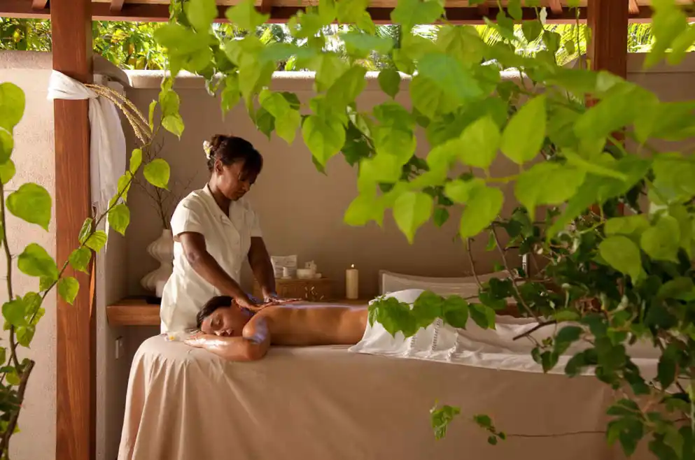 • 9 cottages Spa en front de mer (150 m²) avec lit de détente extérieur et pavillon de massage ;