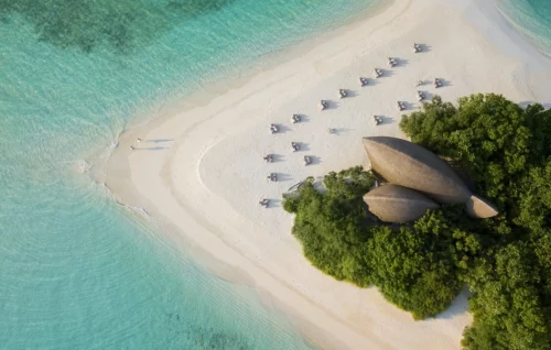 Ces villas contemporaines aux élégantes lignes épurées et aux tonalités blanches rehaussées de mobilier et planchers en bois exotique clair offrent une superficie de 117 m². Elles ont été spécifiquement conçues pour accueillir jusqu’à trois adultes offrant un accès direct au lagon turquoise. Elles disposent d’une vaste terrasse extérieure aménagée comprenant un canapé avec table basse, deux lits de plage et une piscine magnifique piscine à débordement surplombant le lagon. La chambre qui s’ouvre sur la piscine et la mer est agencée avec beaucoup de goût et équipée d’un lit king-size, d’un canapé intégré près de la fenêtre d’où le regard sur perdra dans la turquoise de l’océan Indien, d’un coin bureau/boudoir, d’une machine Nespresso et d’un système audio. La salle de bains a été pensée autour d’une baignoire îlot qui s’ouvre elle aussi sur la terrasse et la mer avec de grandes baies vitrées. Elle est également pourvue d’une cabine de douche à effet pluie, d’une vasque et d’un WC.
