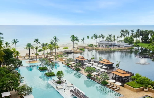 Empreint de charme thaï, le Dusit Thani Hua Hin offre une expérience balnéaire raffinée et apaisante. Situé à Hua Hin – ancienne bourgade de pêcheurs devenue station royale prisée –, l’hôtel s’étend dans un environnement paisible, avec un lac artificiel et un bassin de nénuphars qui promettent sérénité. Ses jardins luxuriants s’ouvrent directement sur une superbe plage du golfe de Thaïlande, invitant à savourer la quiétude du lieu.