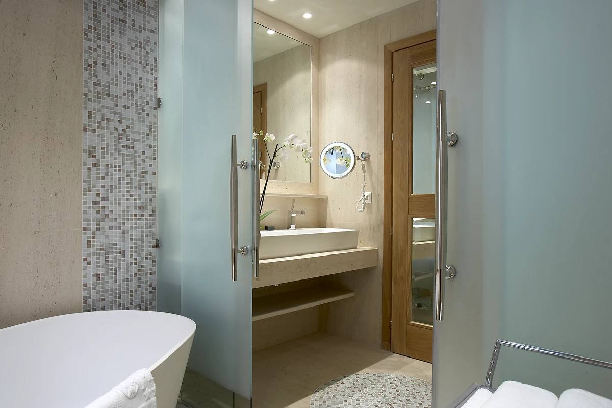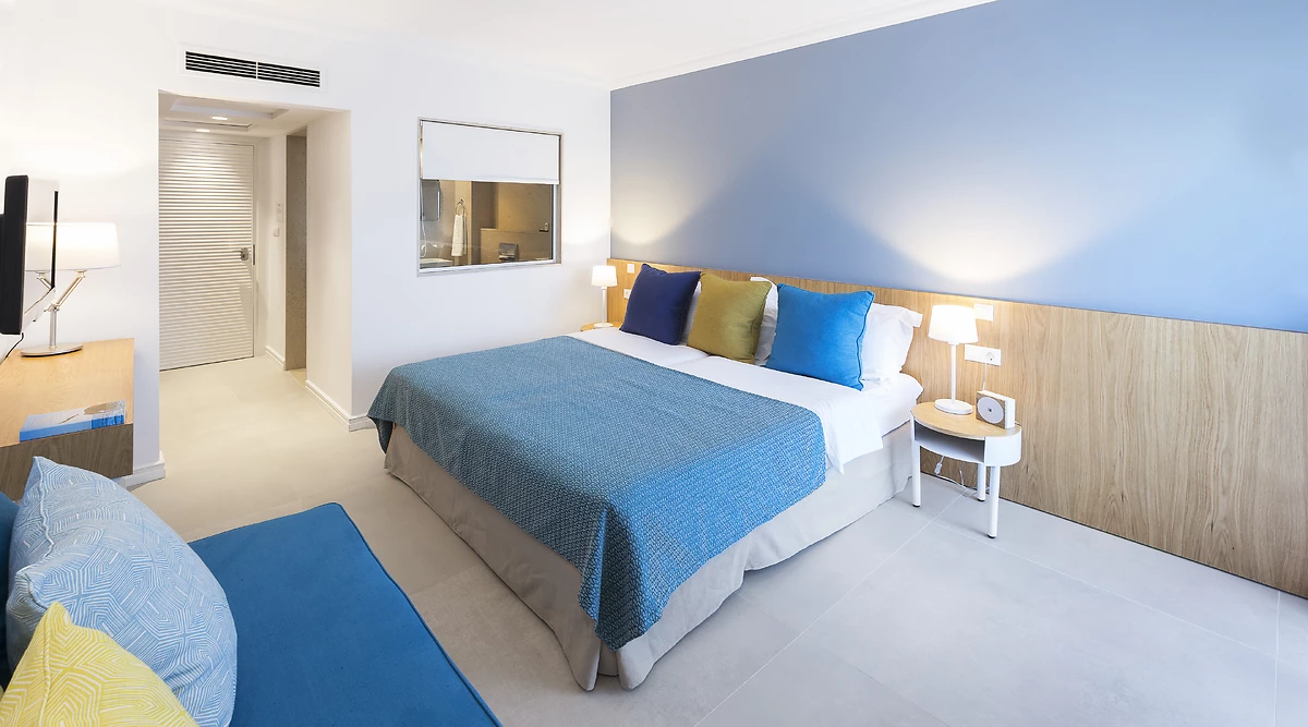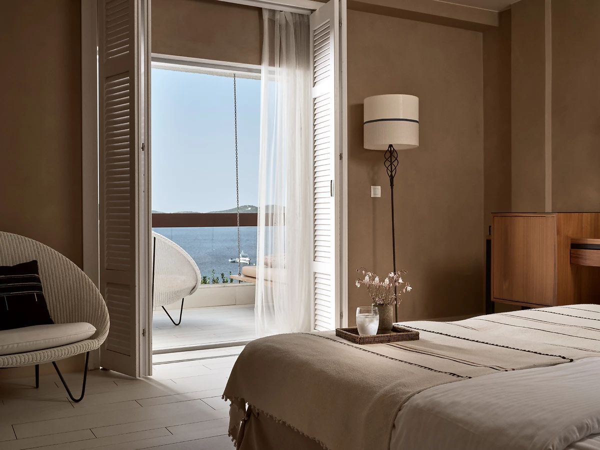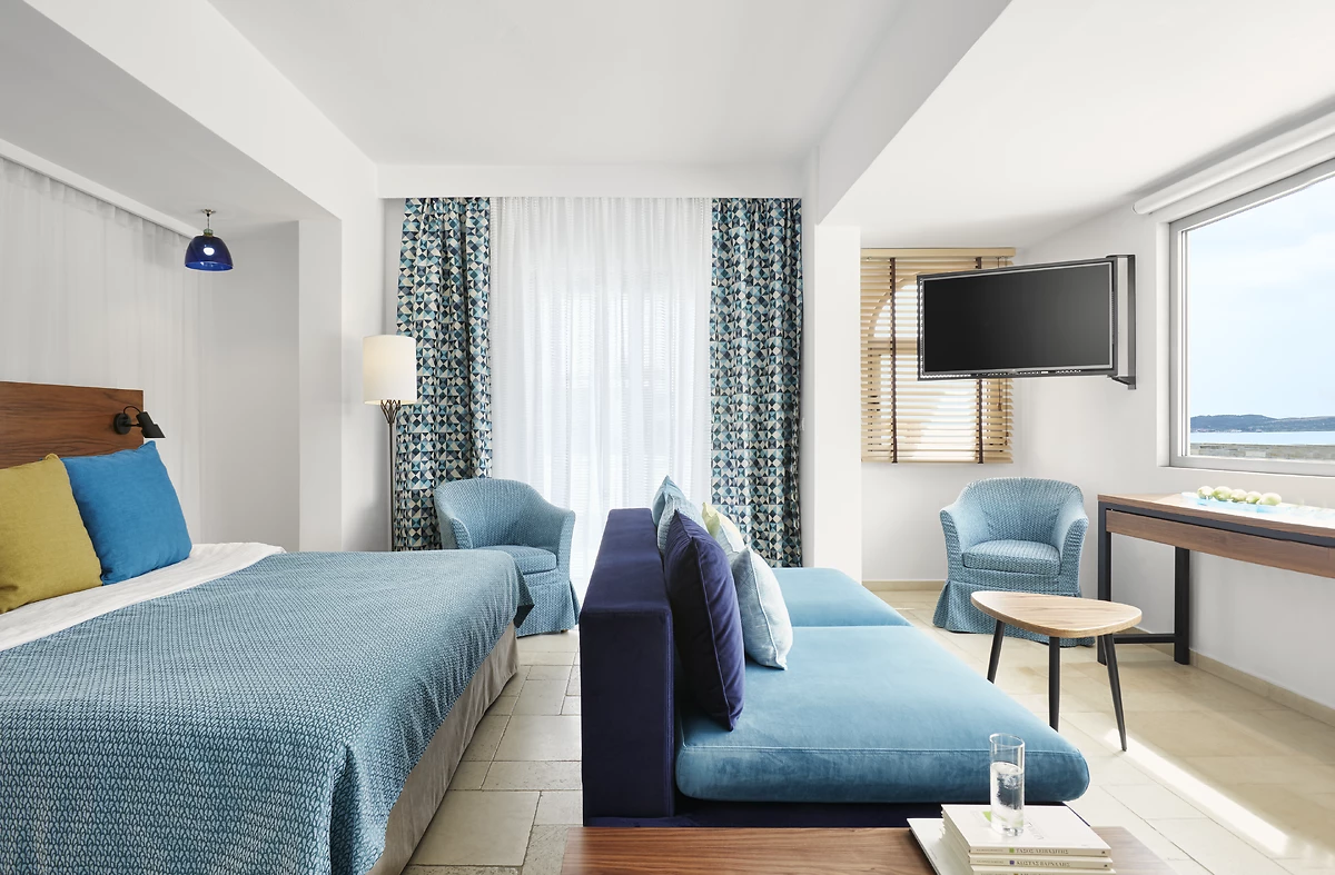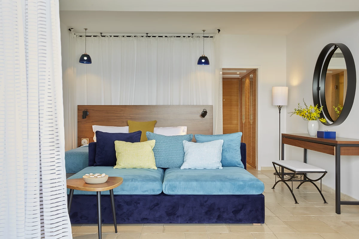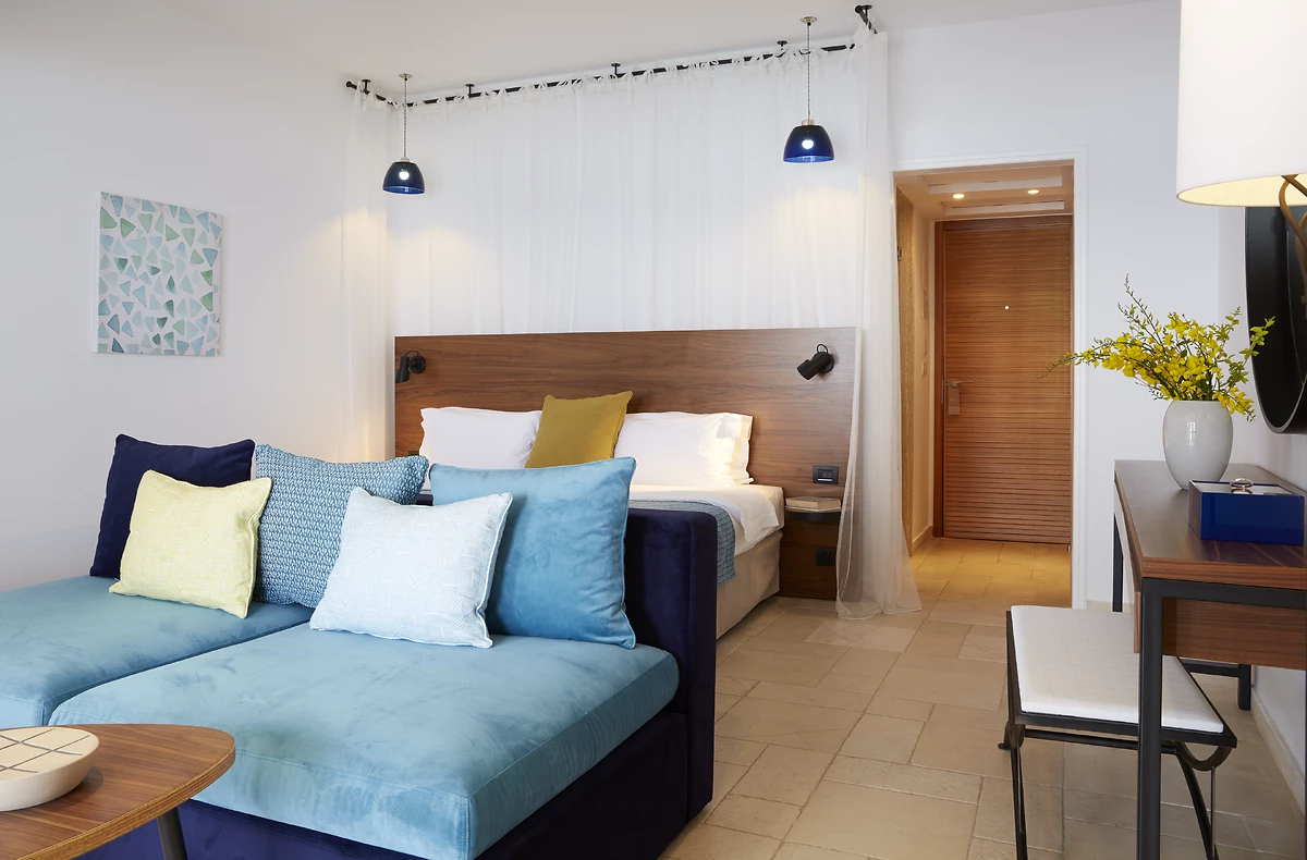 Suite junior 40 m², pouvant accueillir 2 adultes et 1 enfant, avec vue mer.