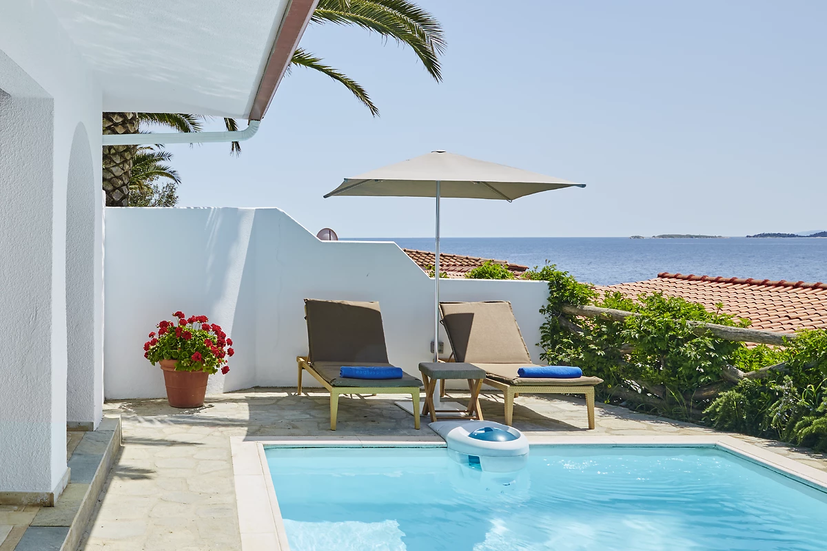 Bungalow 2 chambres 60 m², 2 adultes et 2 enfants, vue mer ou vue mer et piscine privée.