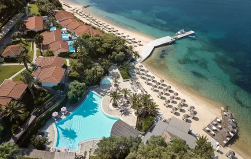 Le Eagles Resort comprend deux hôtels en un niché dans un écrin naturel préservé : Eagles Villas et Eagles Palace. Il est situé en Chalcidique, sur la troisième péninsule, celle d’Athos, à quelques minutes du mur frontière qui ouvre la porte sur l’état monastique du mont Athos, géré par les moines orthodoxes. Le Eagles Palace est isolé au milieu de jardins méditerranéens dans un environnement exceptionnel avec de nombreuses activités qui occuperont petits et grands ; c’est un resort résolument orienté vers les familles.