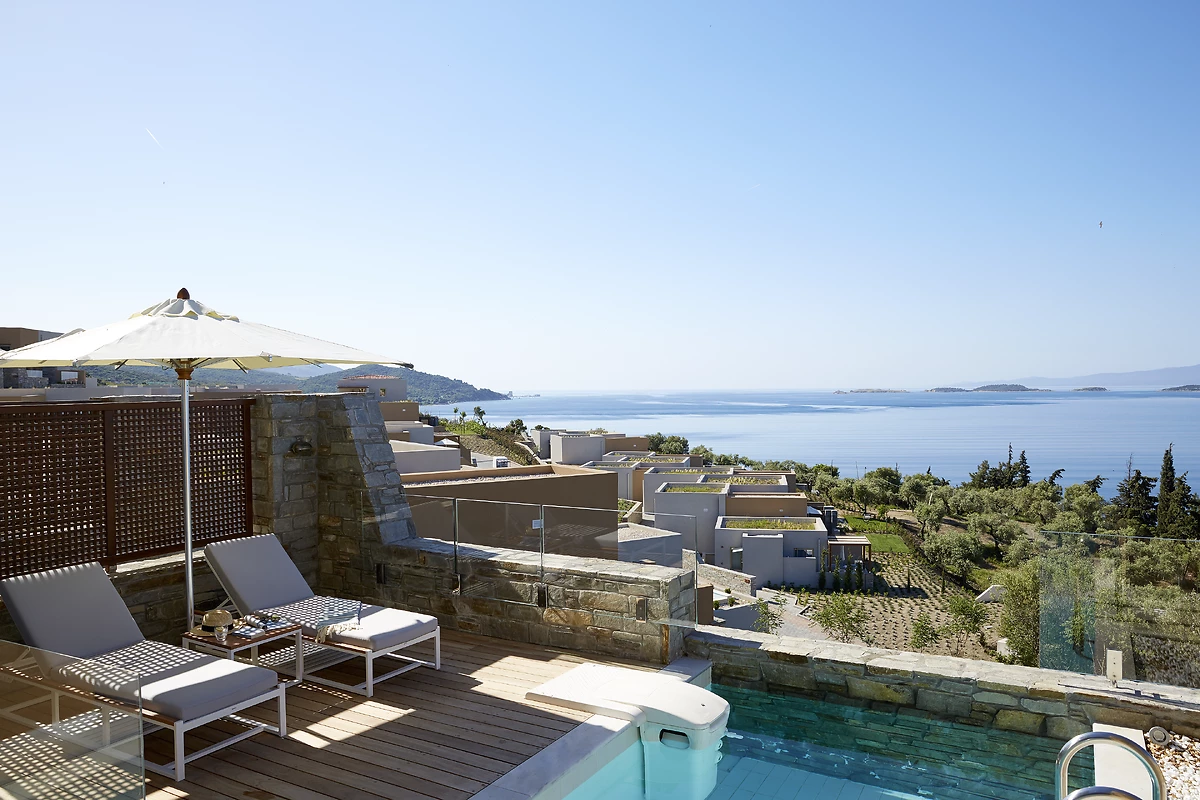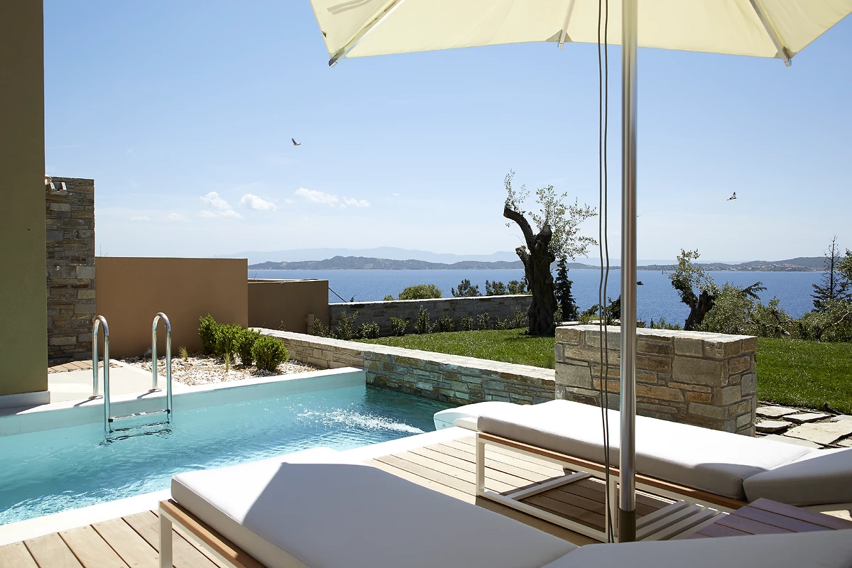 Le Eagles Resort comprend deux hôtels en un niché dans un écrin naturel préservé. Le Eagles Villas et le Eagles Palace sont situés en Chalcidique, sur la troisième péninsule, celle d’Athos. Ils sont à quelques minutes du mur frontière qui ouvre la porte sur l’état monastique du mont Athos, géré par les moines orthodoxes. Les Eagles Villas dominent la colline avec des vues inoubliables.