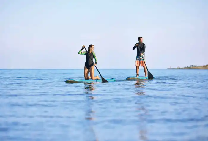 D’une superficie de 35 m² et posée en front de mer, cette suite junior en bungalow peut accueillir 2 adultes et 1 enfant, grâce à un lit king-size et un canapé dans le coin salon. Ce logement possède aussi une salle de bain avec douche à l’italienne et s’ouvre sur une agréable terrasse de 9 m² offrant une superbe vue sur mer.