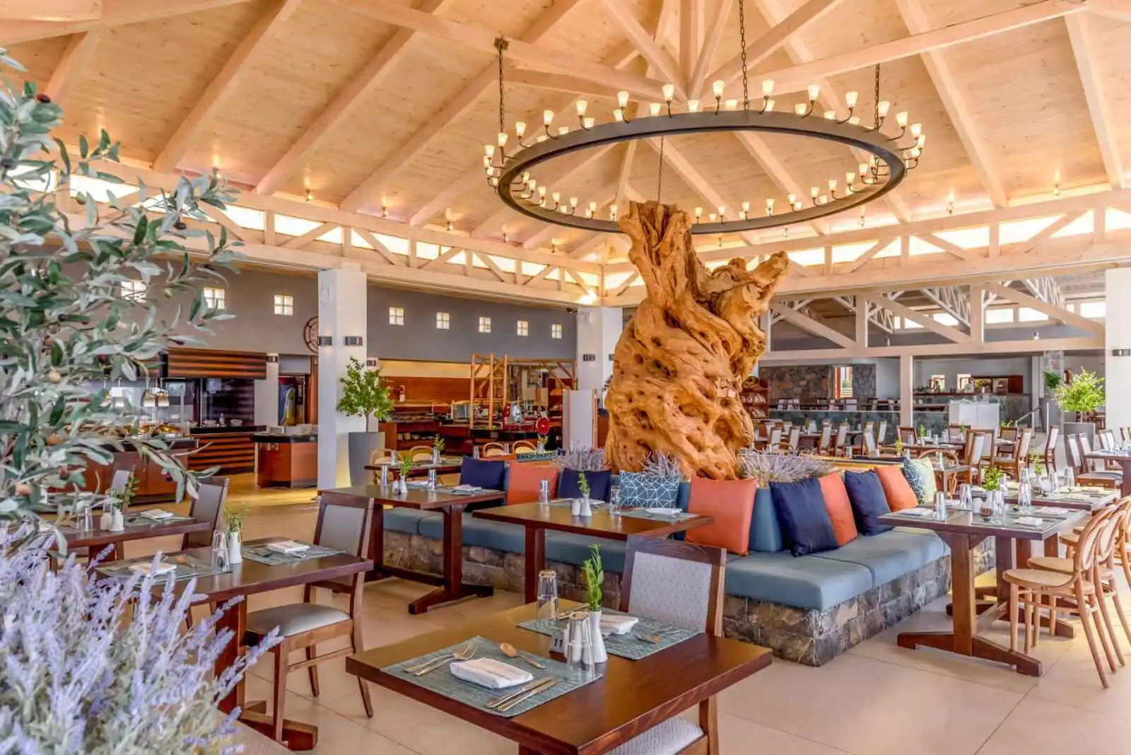 petit déjeuner continental de 10 h 30 à 11 h, déjeuner de 12 h 30 à 14 h 30 et dîner de 19 h à 21 h 30. Expérience Dine Around dans les restaurants à la carte suivants : Ammos Beach, En Lefko et Sunset une fois par séjour (séjour minimum de 7 nuits), au-delà, crédit pour dîner.