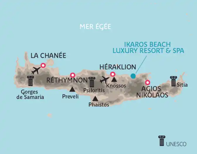 Confidentialité, romantisme et tranquillité décrivent parfaitement la luxueuse station balnéaire de Malia, au nord de l’île. Avec ses façades en pierre perchées sur une falaise, ses ruelles étroites et ses jardins fleuris, l’Ikaros Beach Luxury Resort & Spa, situé à 1 km seulement du centre de la jolie ville, vous procurera la sensation de séjourner dans un authentique village grec. De plus, son concept adults only et sa situation droit sur la plage de sable vous permettra de profiter pleinement de vacances relaxantes.