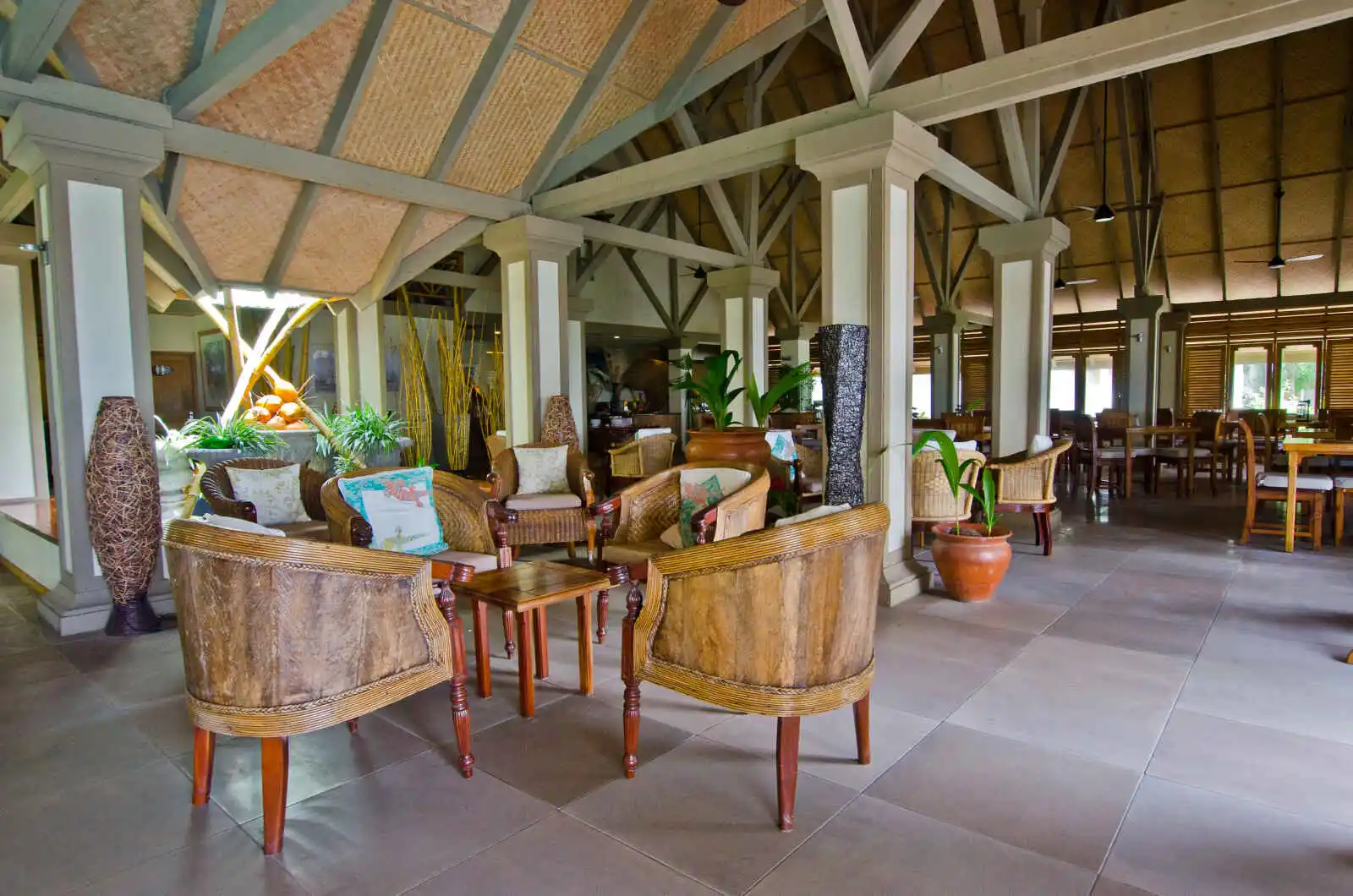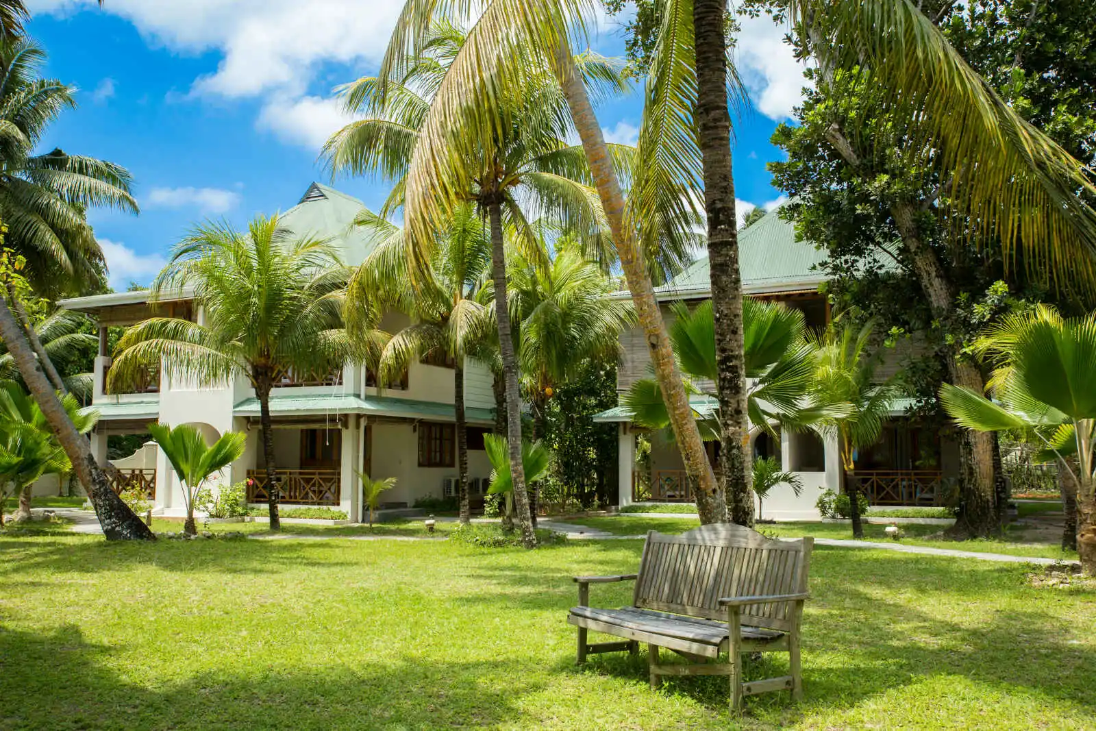 Les 32 chambres sont réparties dans de petits bâtiments de style seychellois, face à la plage, baignés par les teintes émeraude des takamakas qui entourent l’hôtel. Superbement décorées, elles comportent toutes coin salon (la plupart avec 2 canapés convertibles), lit avec moustiquaire, terrasse ou balcon orienté mer, nécessaire à café/thé et télévision.