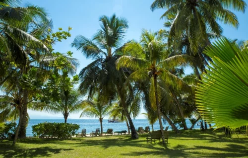 À 5 min de l’aéroport et à 15 min du port, sur la plage de Grand’Anse, sur la côte sud-ouest du littoral praslinois.