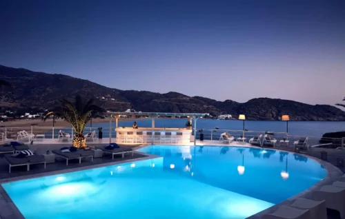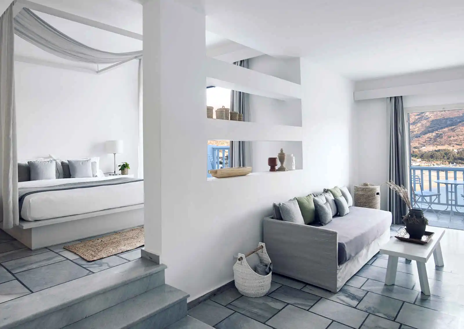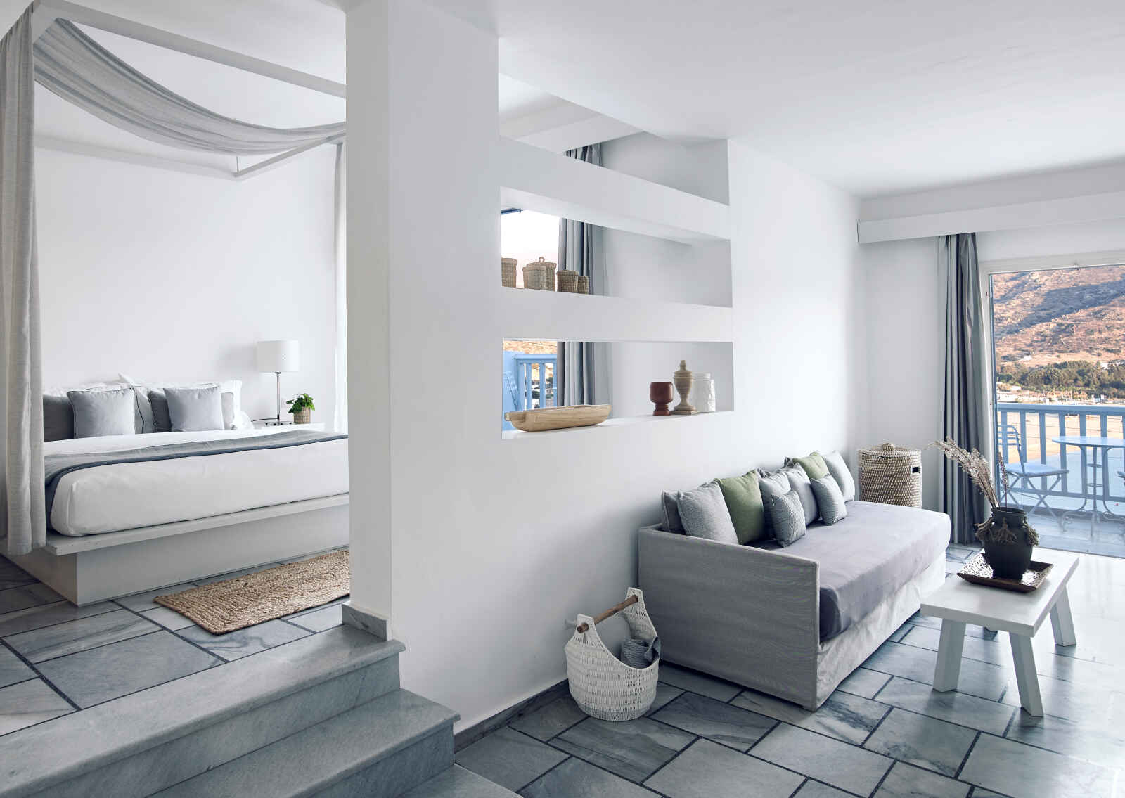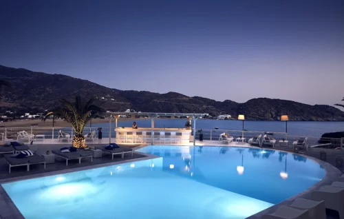 Entouré par le bleu de la mer Égée et embrasé par le soleil des Cyclades, découvrez une expérience unique au Ios Palace, entre luxe et raffinement.