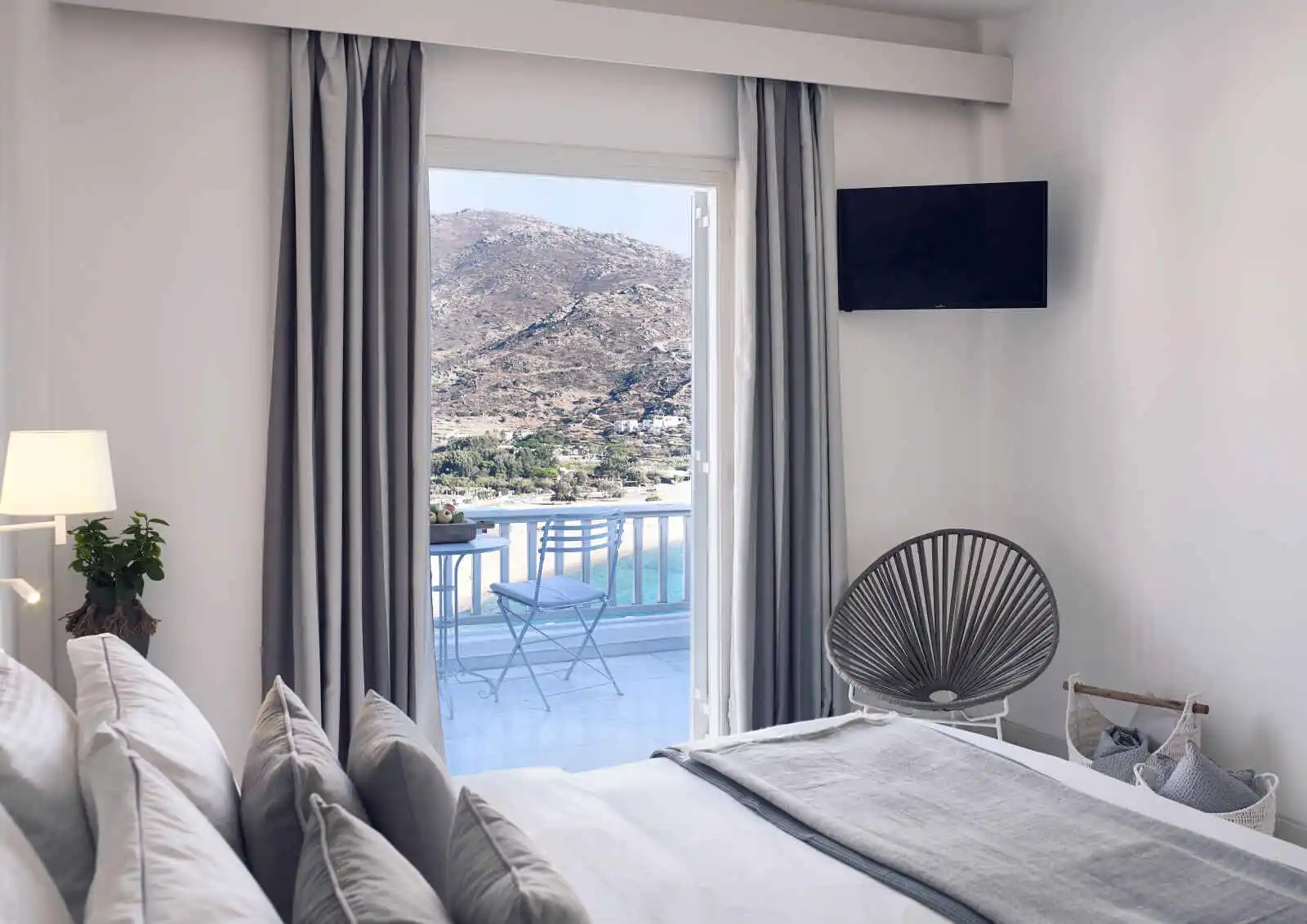 À Mylopotas, paisible petit bourg avec sa grande plage de sable, à 10 min de l'animation de Ios et de son port.