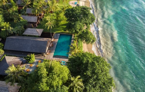 Posé sur la plage de Klui, au nord de Lombok, le Jeeva Klui Resort s’étend entre sable doré et collines verdoyantes, face aux eaux turquoise de l’océan Indien et aux côtes de Bali. Construit dans le respect de l’architecture sasak traditionnelle, cet hôtel-boutique conjugue élégance et authenticité locale. Suites et villas au toit de chaume s’intègrent aux jardins tropicaux, tandis que Spa, restaurant en bord de mer et service attentionné composent une atmosphère paisible.