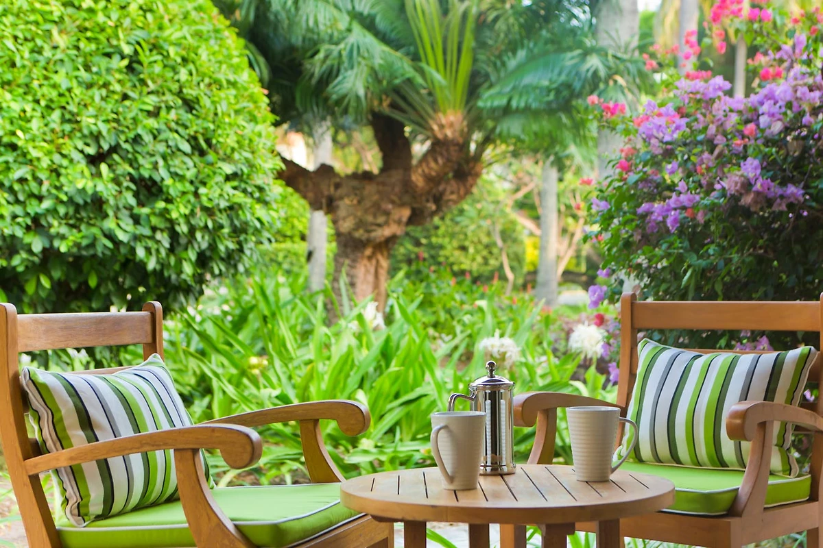 180 chambres, bungalows et villas avec climatisation, terrasse privée et douche extérieure.