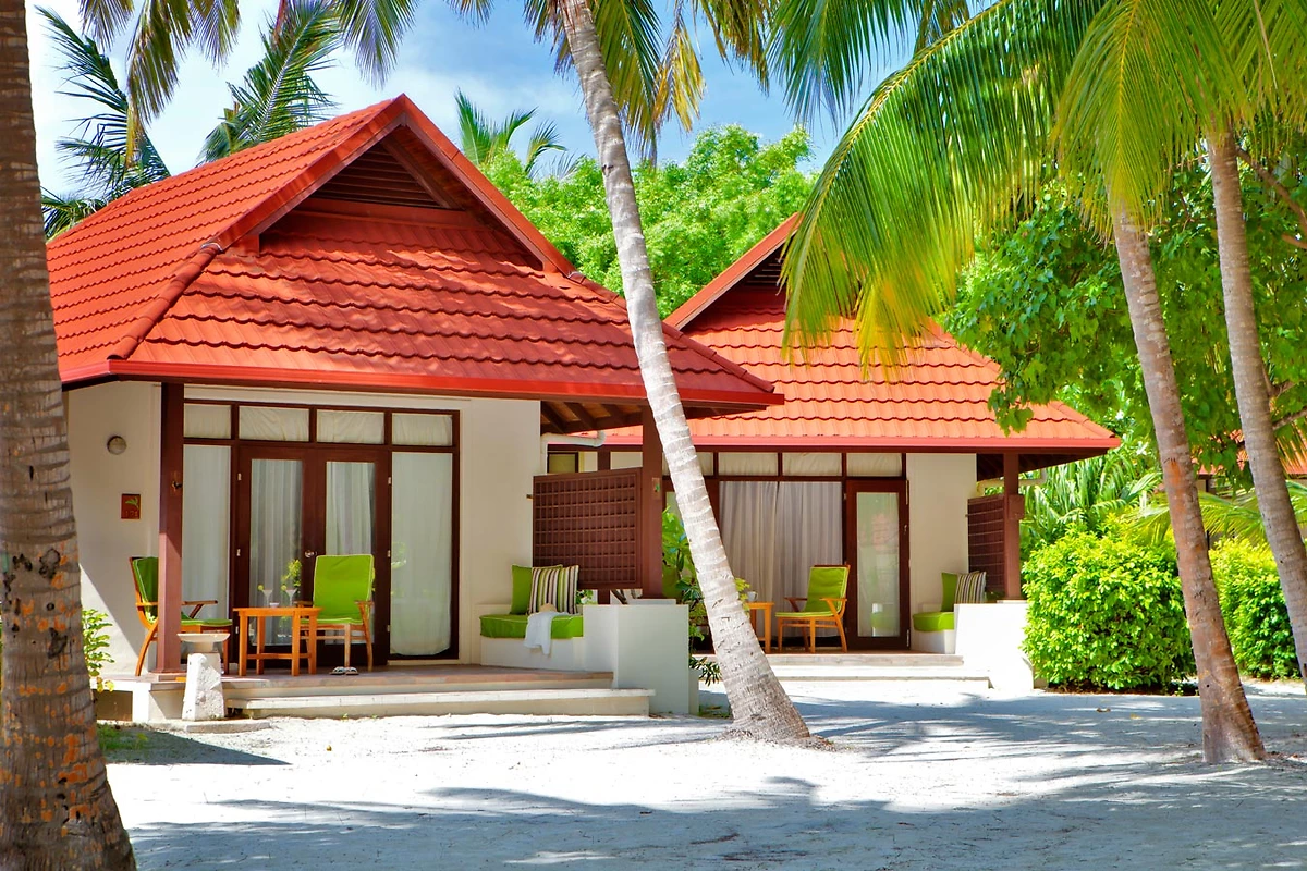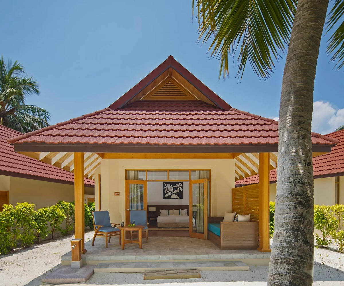 Ces villas au style contemporain, d’une superficie de 74 m², sont conçues pour accueillir jusqu’à 3 adultes ou 2 adultes et 2 enfants. Enveloppées par la luxuriante végétation tropicale de l’île, elles se trouvent à proximité de la plage. Chaque villa est composée d’une chambre équipée d’un lit king-size, d’un lit de jour, d’un coin bureau et d’un spacieux dressing à l’arrière qui constitue une pièce en plus. La salle de bains semi-ouverte est fort bien dotée avec sa grande baignoire, sa cabine de douche et sa douche extérieure à effet de pluie. La terrasse en bois, partiellement ombragée par la toiture, constitue un espace idéal pour prendre l’apéritif en plein air ou tout simplement se laisser absorber par la contemplation. Deux chaises accompagnées d’une table basse et un lit de jour sont également disponibles sur la terrasse. Chaque villa est équipée d’une cafetière à piston et de café fraîchement moulu de la marque Lavazza ainsi que d’adaptateurs électriques.