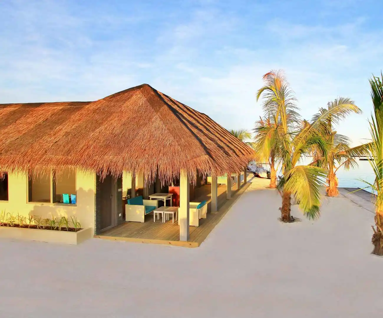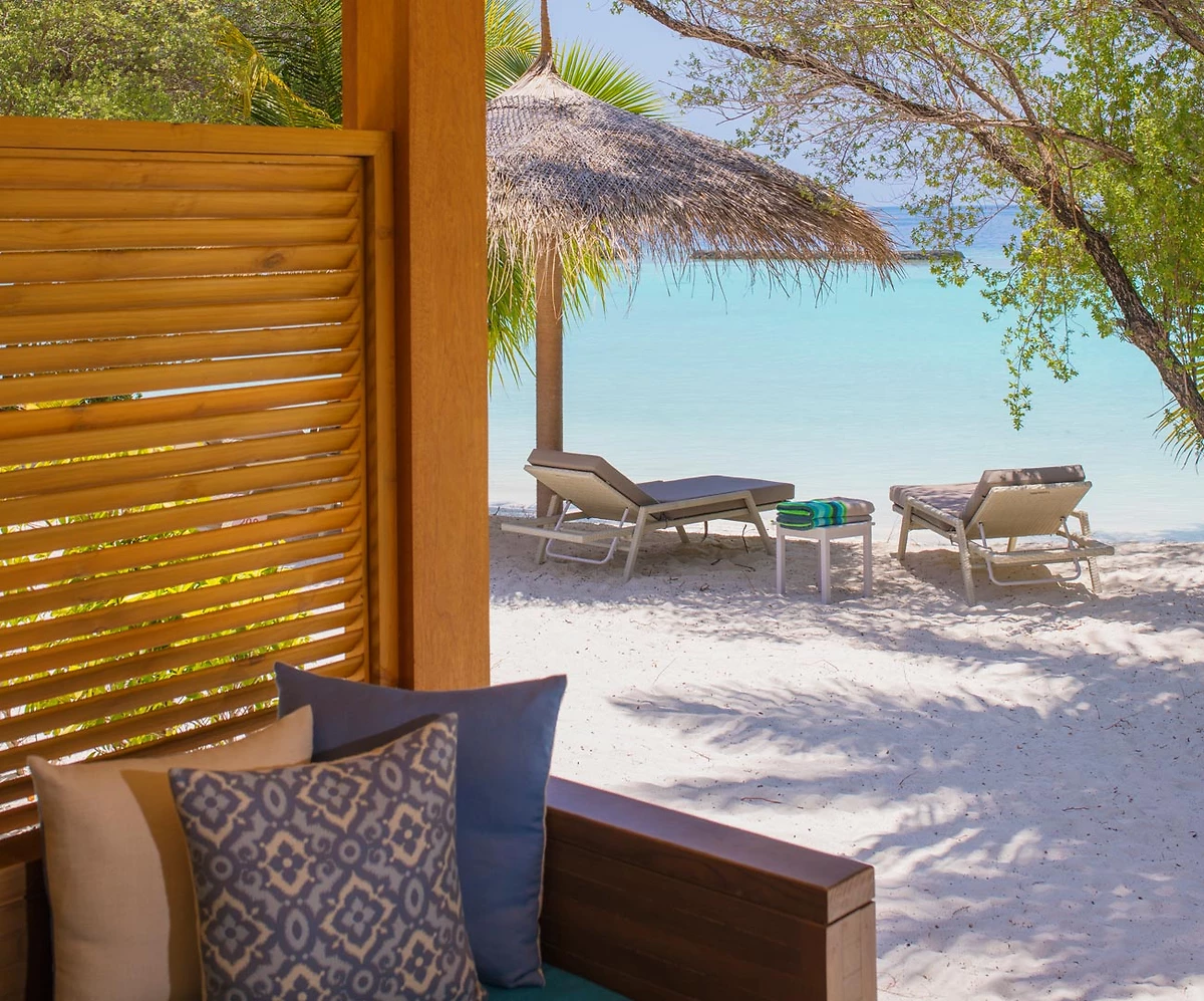 Ces villas au style contemporain, d’une superficie de 74 m², sont conçues pour accueillir jusqu’à 3 adultes ou 2 adultes et 2 enfants. Enveloppées par la luxuriante végétation tropicale de l’île, elles bénéficient d’un emplacement privilégié en première ligne sur la plage et font face aux eaux turquoise de l’océan Indien. Chaque villa est composée d’une chambre équipée d’un lit king-size, d’un lit de jour, d’un coin bureau et d’un spacieux dressing à l’arrière qui constitue une pièce en plus. La salle de bains semi-ouverte est fort bien dotée avec sa grande baignoire, sa cabine de douche et sa douche extérieure à effet de pluie. La terrasse en bois, partiellement ombragée par la toiture, constitue un espace idéal pour prendre l’apéritif en plein air ou tout simplement se laisser absorber par la contemplation du lagon. Elle est aménagée avec un coin détente comprenant, des chaises, la table basse, un lit de jour et deux chaises longues pieds dans le sable. Chaque villa est équipée d’une machine à café Nespresso et d’adaptateurs électriques.