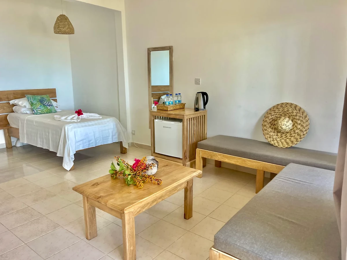 12 chambres de charme, les plus spacieuses sont situées au rez-de-chaussée. Façonnées à l’âme créole, toutes les chambres ont vue sur mer et surplombent ainsi un splendide lagon aux teintes oscillant entre le turquoise et le lapis lazuli. Face au soleil levant, joliment décorées, elles offrent à la fois authenticité, tranquillité et exotisme. Chaque chambre s’ouvre sur une terrasse ou un balcon privé et dispose de climatisation, télévision satellite, bouilloire, sèche-cheveux, coffre-fort et petit réfrigérateur. Toutes les salles de bains ont été refaites.